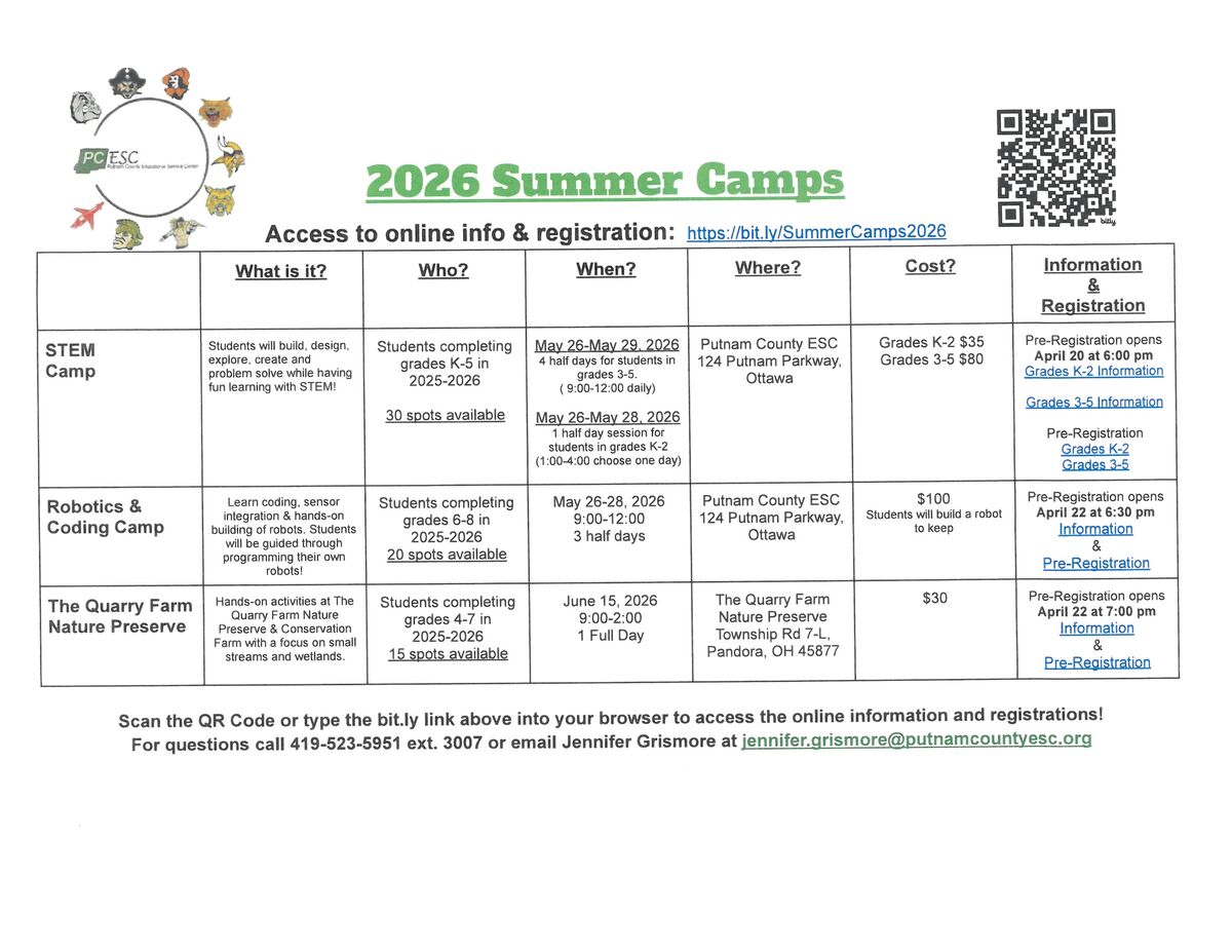 May Lunch Menu & Summer Camps